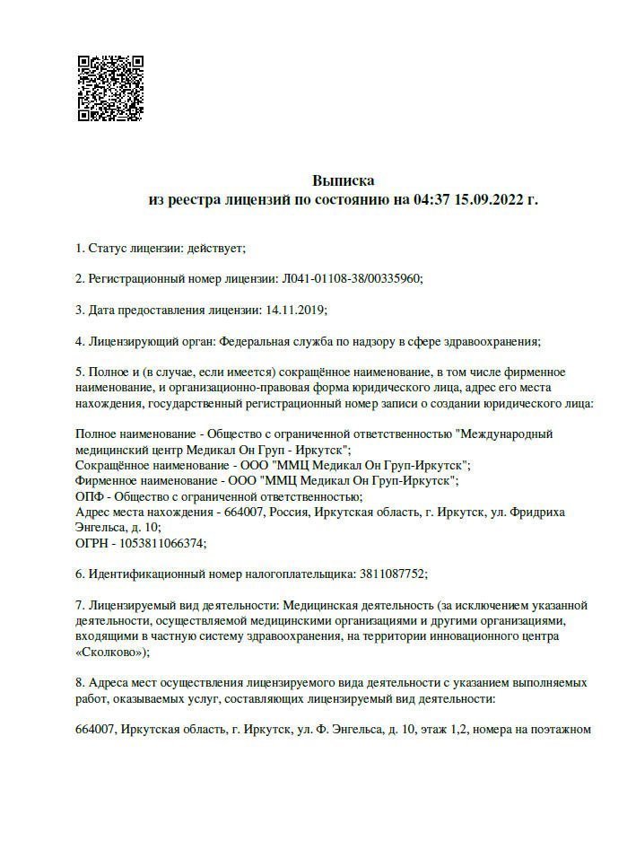 «ООО «ММЦ Медикал Он Груп – Иркутск» не участвует в реализации программы диспансеризации населения и не оказывает услуги по госпитализации.