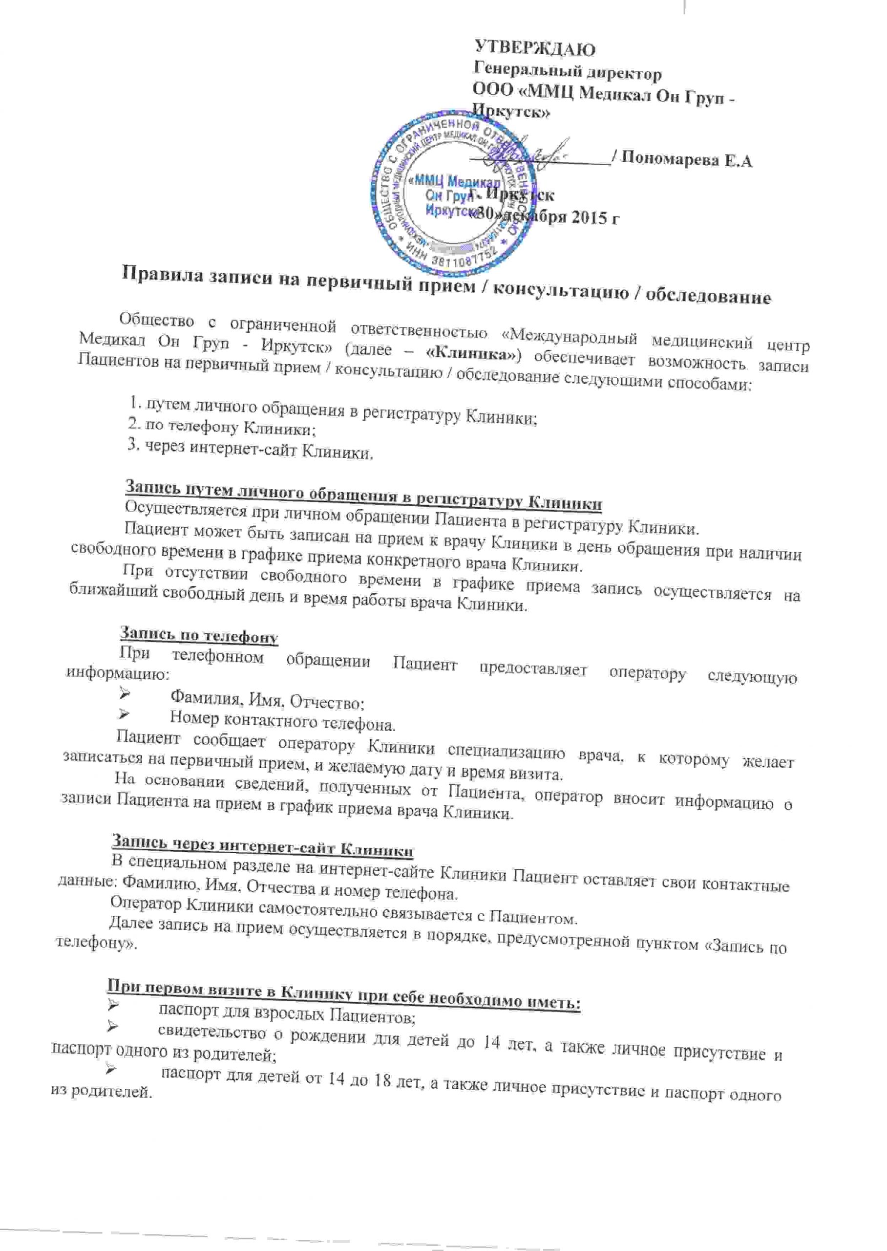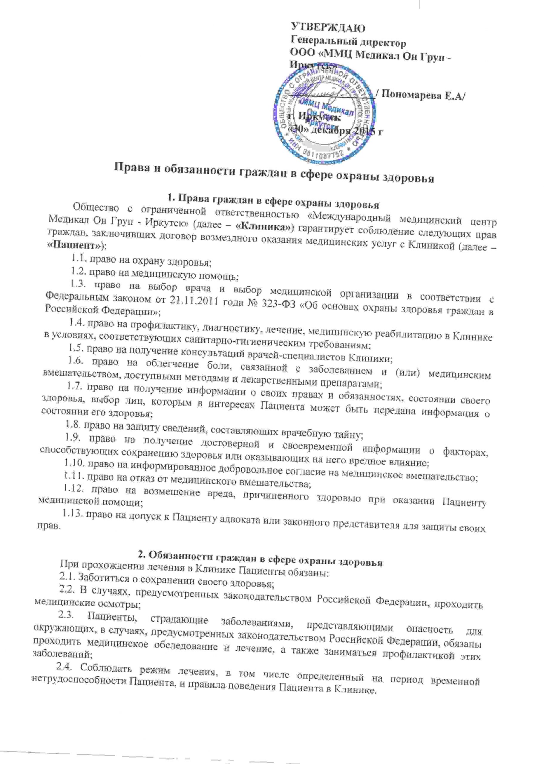 «ООО «ММЦ Медикал Он Груп – Иркутск» не участвует в реализации программы государственных гарантий бесплатного оказания гражданам медицинской помощи и территориальной программы государственных гарантий бесплатного оказания гражданам медицинской помощи.